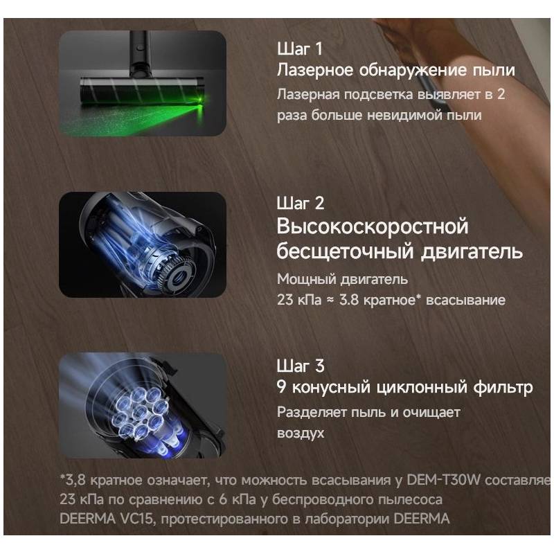 - легко очищаемый пылесборник, настенное крепление, подсветка зоны уборки