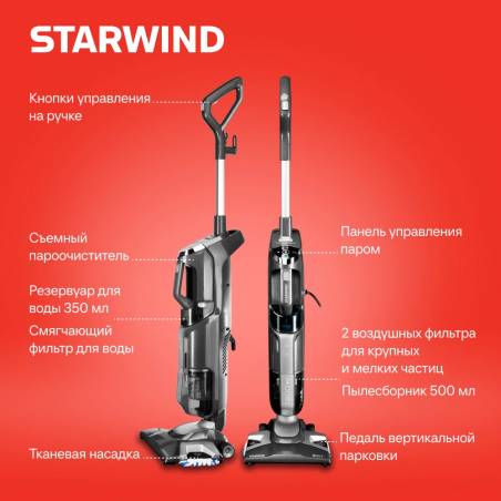Пылесос паровой Starwind SSV9555 1800Вт темно-серый/серебристый