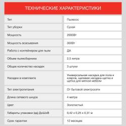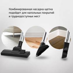 - Универсальная насадка для пола и ковров, щелевая насадка-щетка и щетка для мягкой мебели.