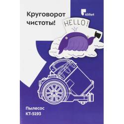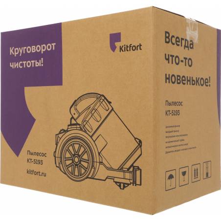 - Пылесос КТ-5193 имеет современную многоуровневую систему фильтрации, что помогает качественной уборку. Также пылесос оснащен выходным фильтром, который уменьшает выброс пыли в воздух. Благодаря комплекту насадок пылесос подойдёт для любого вида уборки.