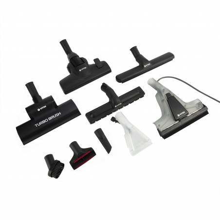 - щетка для чистки мягкой мебели, щетка для стекол, насадка для очистки рабочих поверхностей, турбощетка, щелевая насадка для сбора воды/жидкой грязи, щелевая насадка, насадка для сбора пыли и насадка для обивки