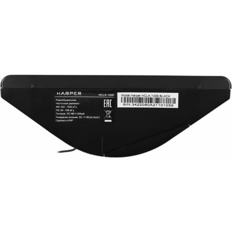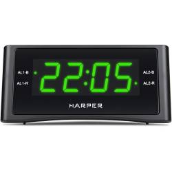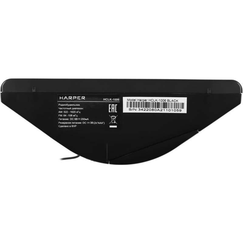 Радиобудильник Harper HCLK-1006 черный LED подсв:зеленая часы:цифровые AM/FM