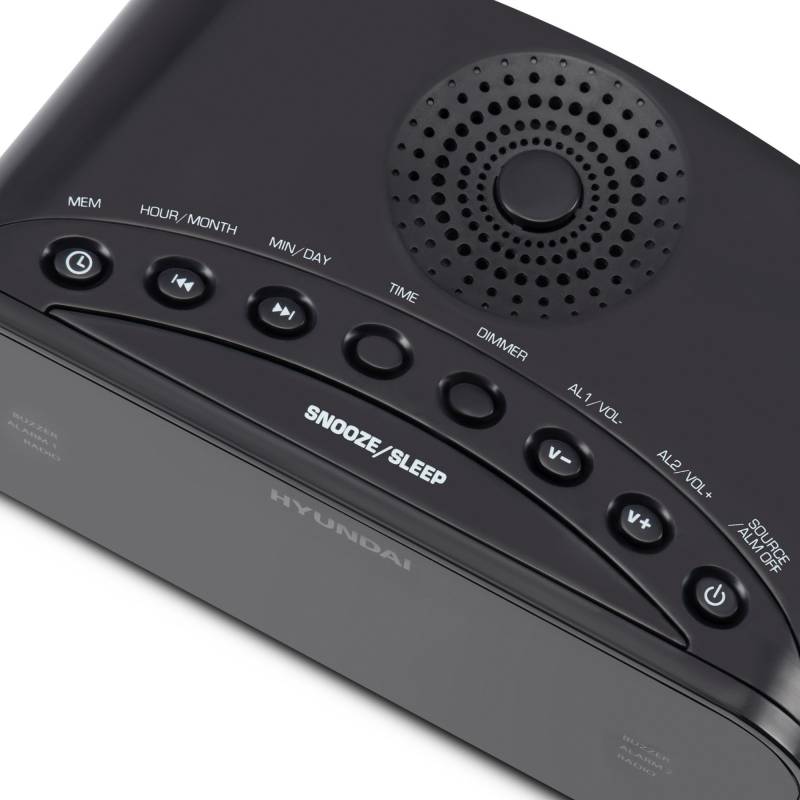 Радиобудильник Hyundai H-RCL221 черный LCD подсв:зеленая часы:цифровые FM