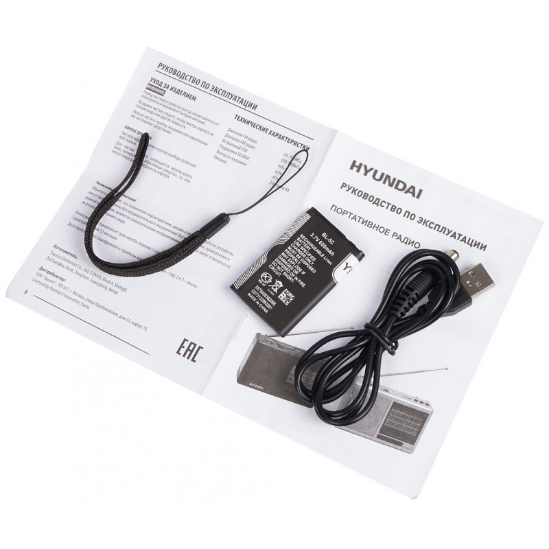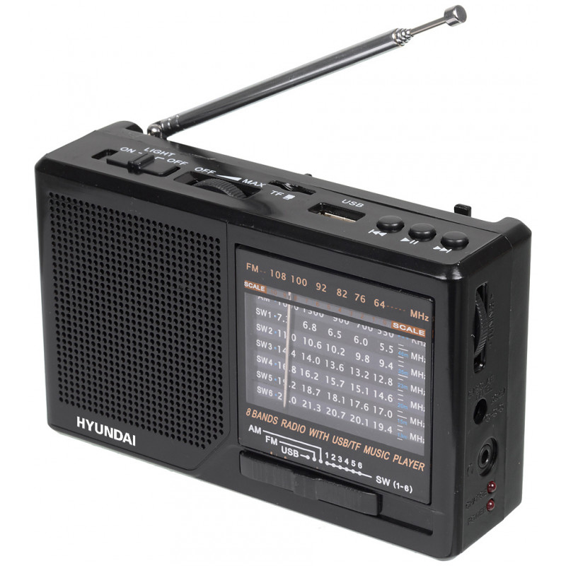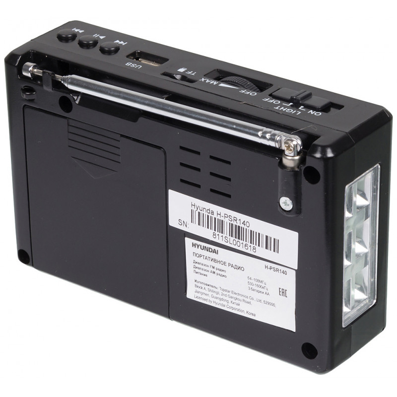Радиоприемник портативный Hyundai H-PSR140 черный USB microSD