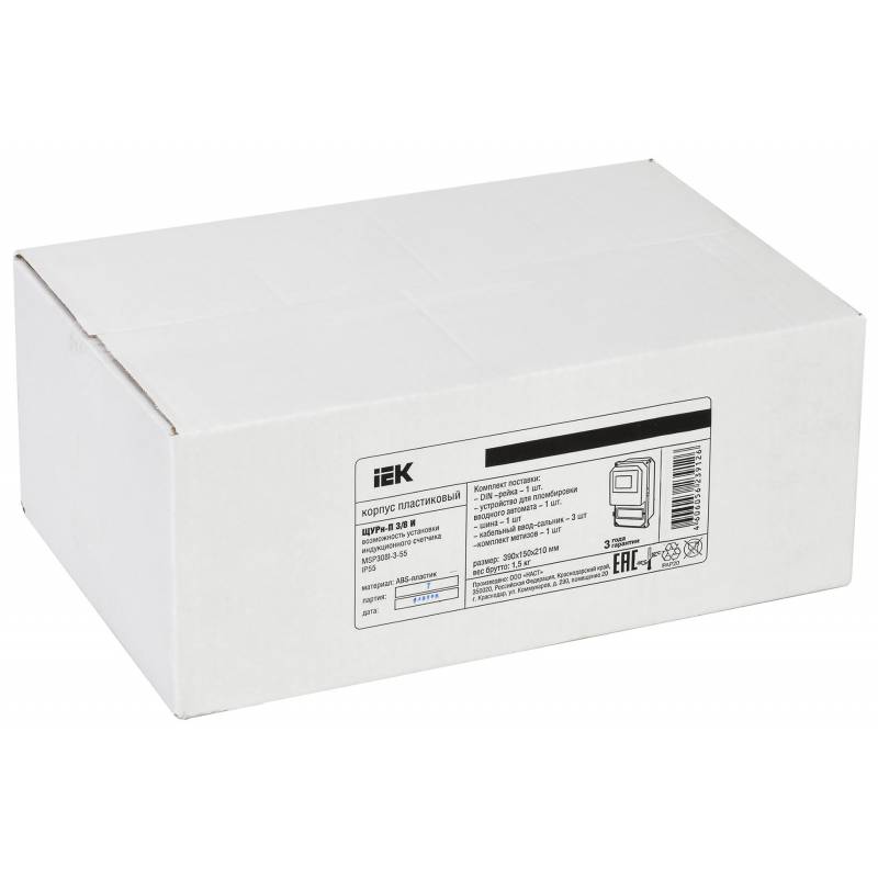 Щит распределительный IEK MSP308-3-55 ЩУРн-П 3/8 IP55 для установки счетчика навесной 227мм 118мм 366мм 400B 8мод. пластик IP55