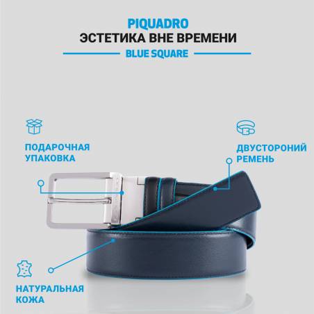 - Двусторонний мужской ремень с пряжкой и шпеньком от компании Piquadro, коллекция Blue Square. Натуральная телячья кожа. Фирменная упаковка.