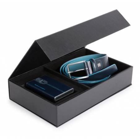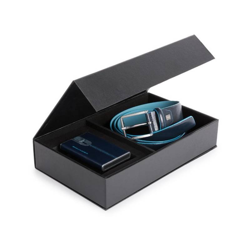 Набор подарочный мужской Piquadro Blue Square CUBOX15B2R/BLU2 ремень/чехол для кредитных карт синий натур.кожа
