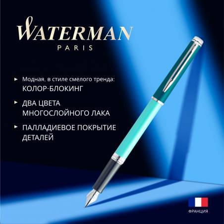Ручка перьев. Waterman Hemisphere Colour Blocking (2190122) Green CT сталь нержавеющая F подар.кор.