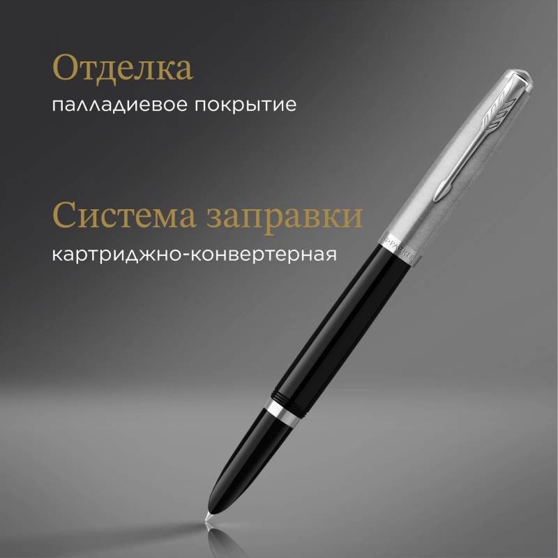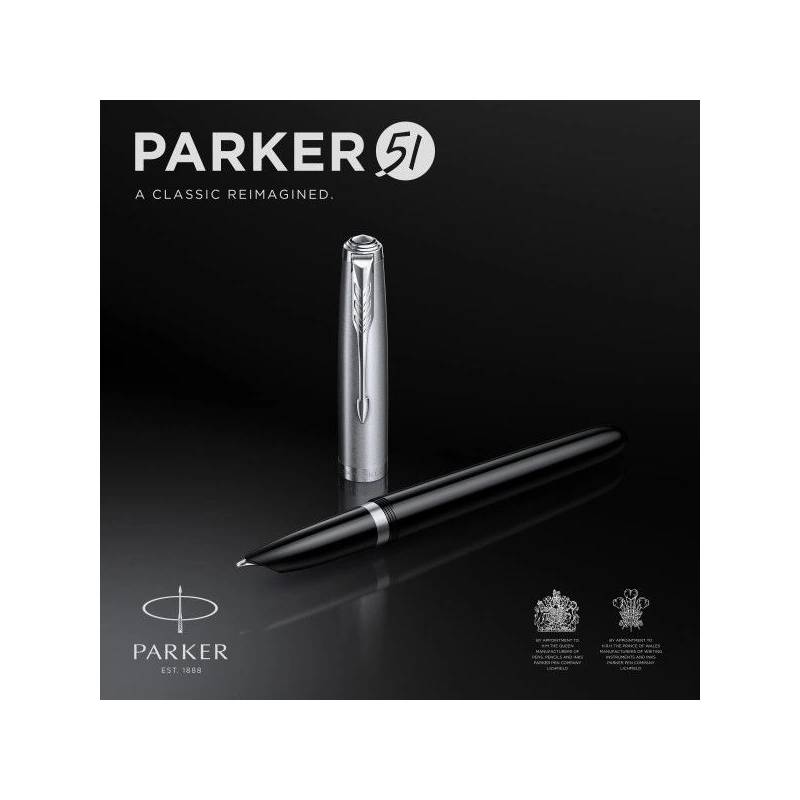 Ручка перьев. Parker 51 Core (CW2123491) Black CT F сталь нержавеющая подар.кор.