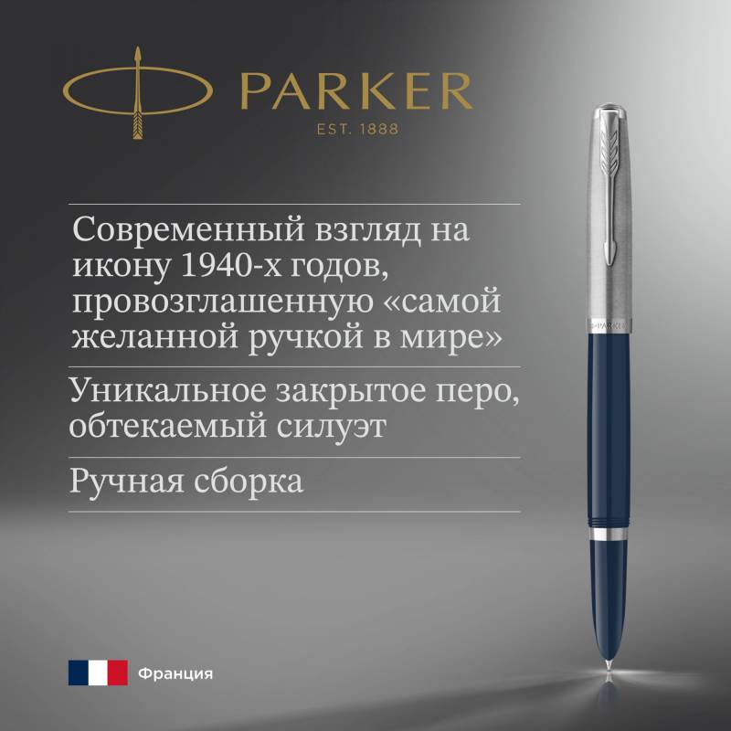 Ручка перьев. Parker 51 Core (CW2123501) Midnight Blue CT F сталь нержавеющая подар.кор.