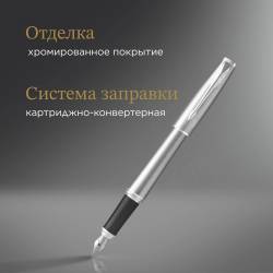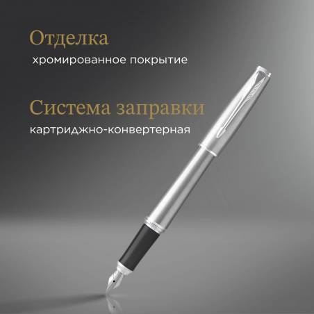 Ручка перьев. Parker Urban Core F200 (1931605) Metro Metallic CT M сталь нержавеющая подар.кор.