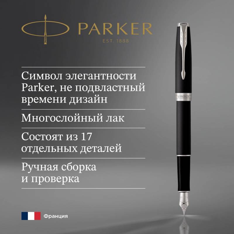 Ручка перьев. Parker Sonnet Core F529 (CW1931521) Matte Black CT F сталь нержавеющая подар.кор.