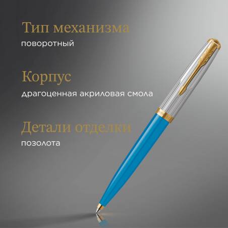 Ручка шариков. Parker 51 Premium (CW2169080) Turquoise GT M черн. черн. подар.кор.