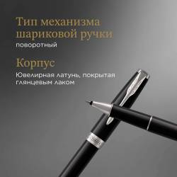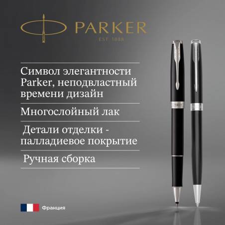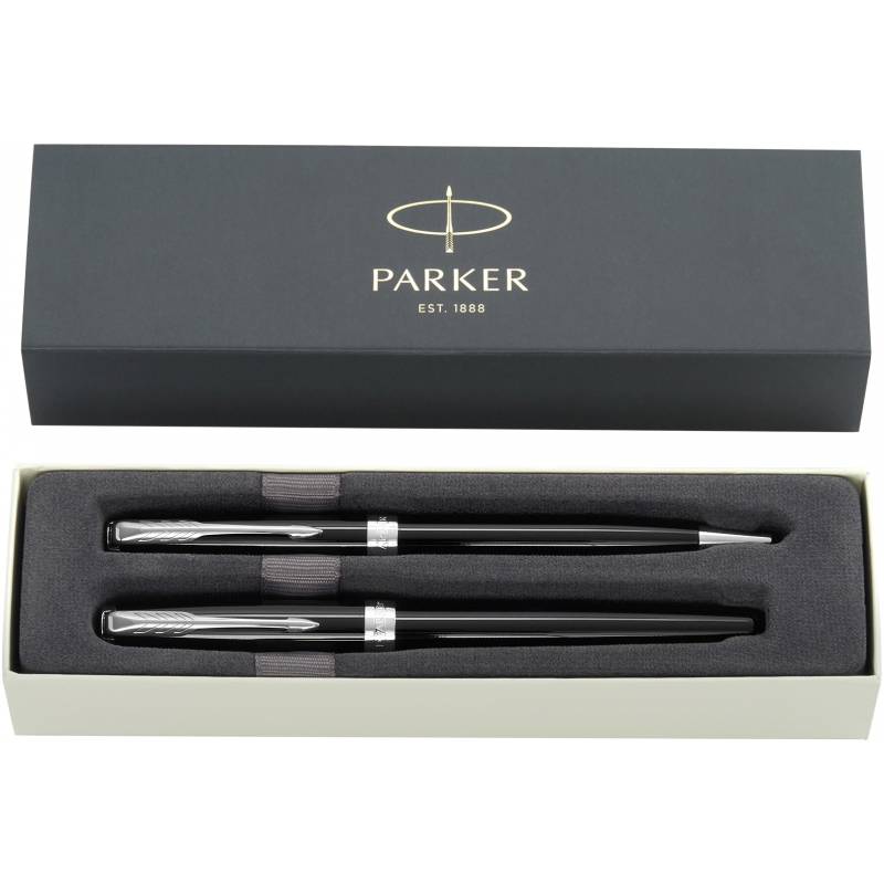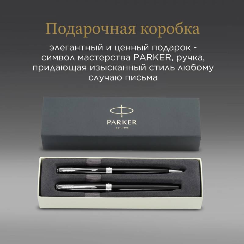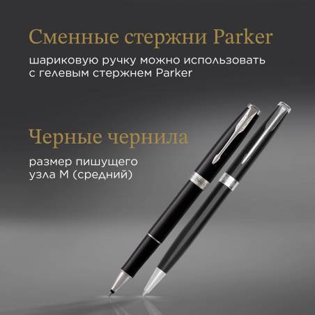 Набор ручек Parker Sonnet (CW2093259) LaqBlack CT M подар.кор. ручка роллер, ручка шариковая