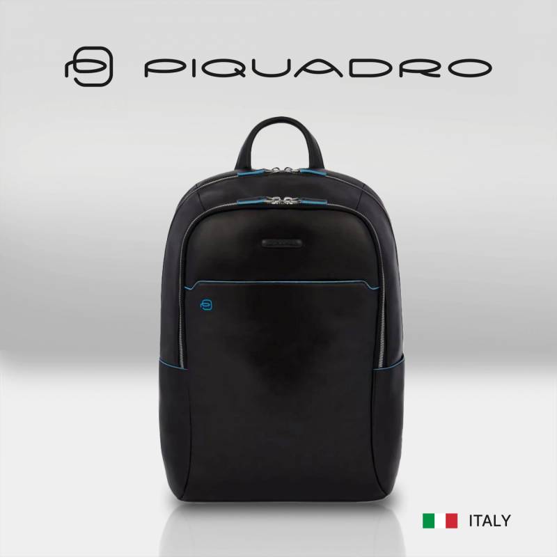 - Новая версия наиболее популярной модели рюкзака CA3214B2, только в увеличенном варианте, из коллекции Piquadro Blue Square. Изготовлен рюкзак из гладкой телячьей кожи с восковой пропиткой и голубым кантом. В отличие от своего "младшего брата" данная модел