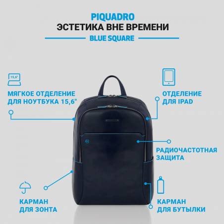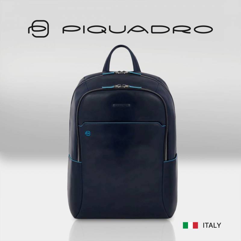 - Новая версия наиболее популярной модели рюкзака CA3214B2, только в увеличенном варианте, из коллекции Piquadro Blue Square. Изготовлен рюкзак из гладкой телячьей кожи с восковой пропиткой и голубым кантом. В отличие от своего "младшего брата" данная модел