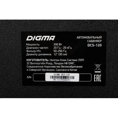 Сабвуфер автомобильный Digma DCS-120 300Вт активный (30см/12")