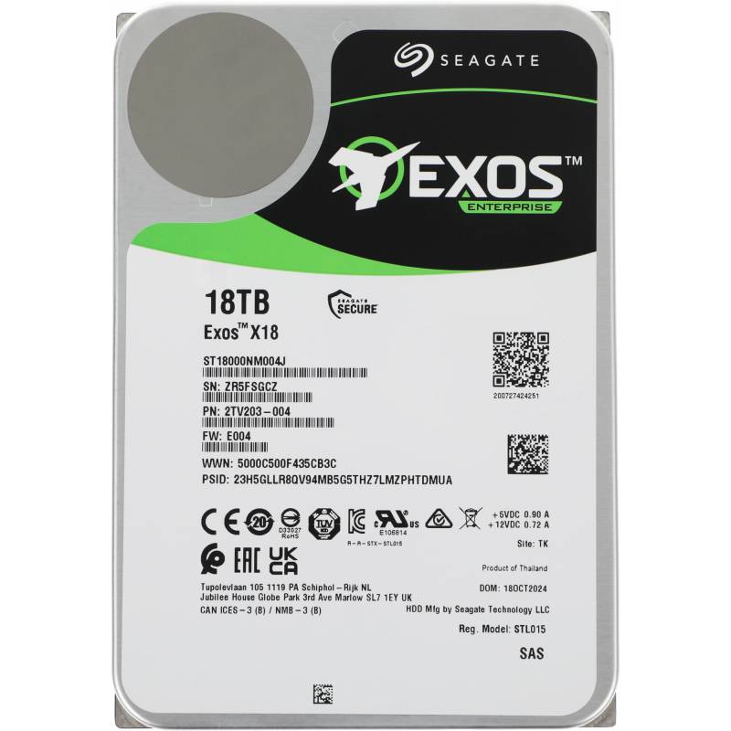 Жесткий диск Seagate SAS 3.0 18Tb ST18000NM004J Server Exos X18 512E (7200rpm) 256Mb 3.5"