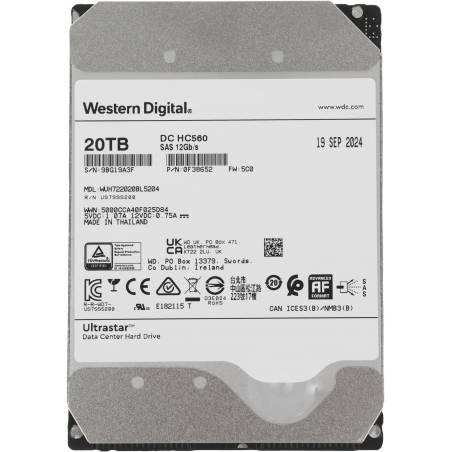 Жесткий диск WD SAS 3.0 20TB 0F38652 WUH722020BL5204 Server Ultrastar DC HC560 512E (7200rpm) 512Mb 3.5"