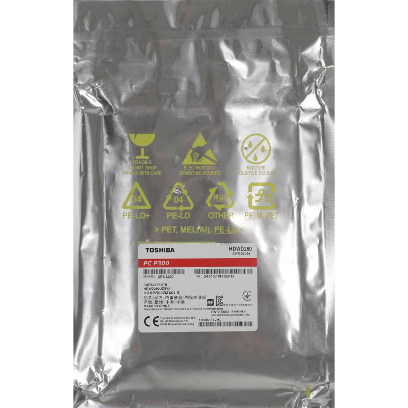 Жесткий диск Toshiba SATA-III 6TB HDWD260UZSVA Desktop P300 4KN (5400rpm) 128Mb 3.5"