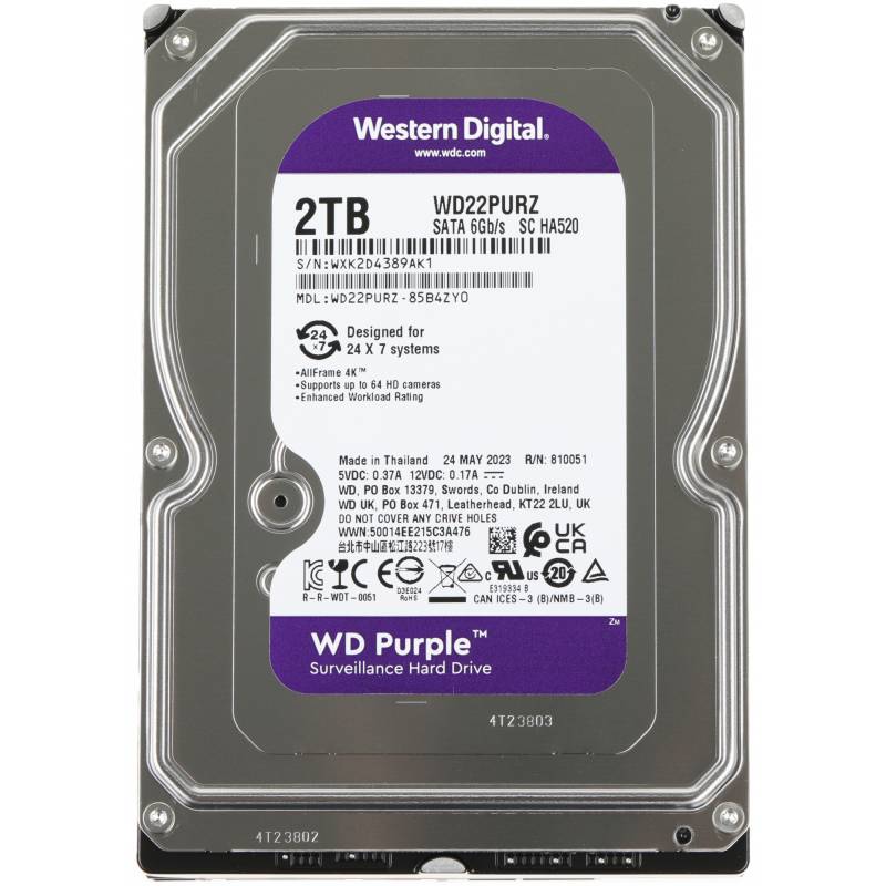 Жесткий диск WD SATA-III 2Tb WD22PURZ Surveillance Purple (5400rpm) 256Mb 3.5"
