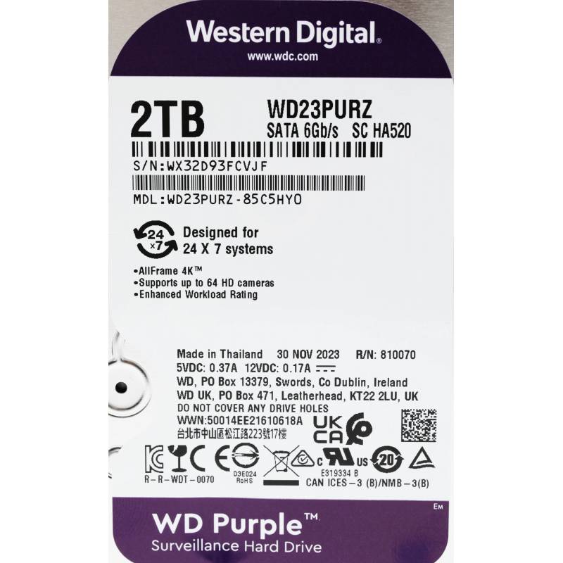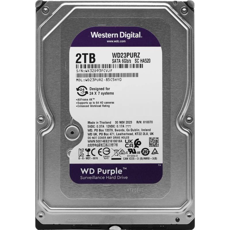 Жесткий диск WD SATA-III 2TB WD23PURZ Surveillance Purple (5400rpm) 64Mb 3.5"