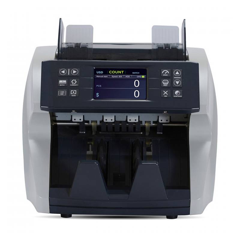 - Быстро пересчитывает крупные партии денег. Скорость можно настроить вручную, Механизм бережно обращается с купюрами. Исключены повреждения банкнот. Несколько режимов обработки наличности: простой подсчет, автоматический пересчет, определение номиналов