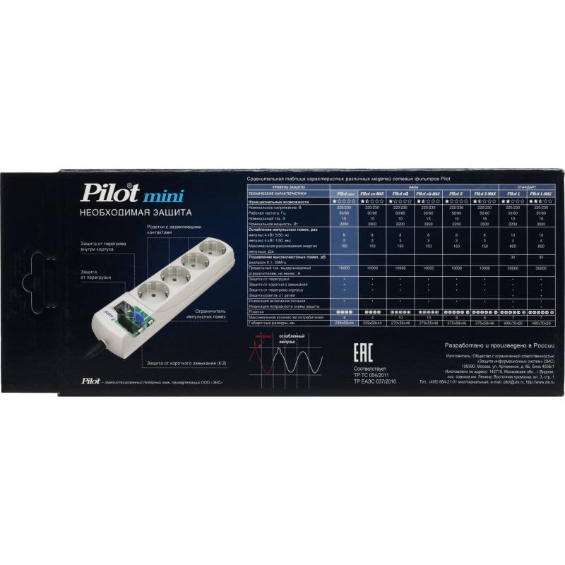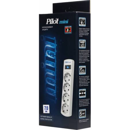 Сетевой фильтр Pilot mini 7м (4 розетки) белый (коробка)