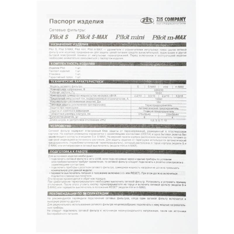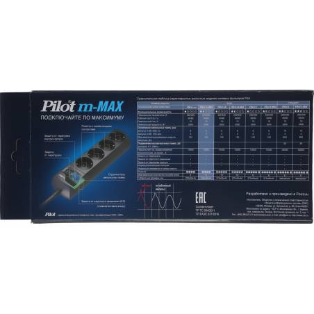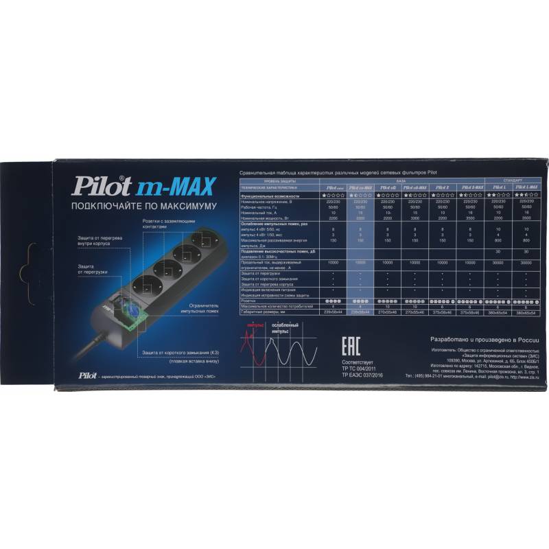Сетевой фильтр Pilot m-MAX 7м (4 розетки) серый (коробка)