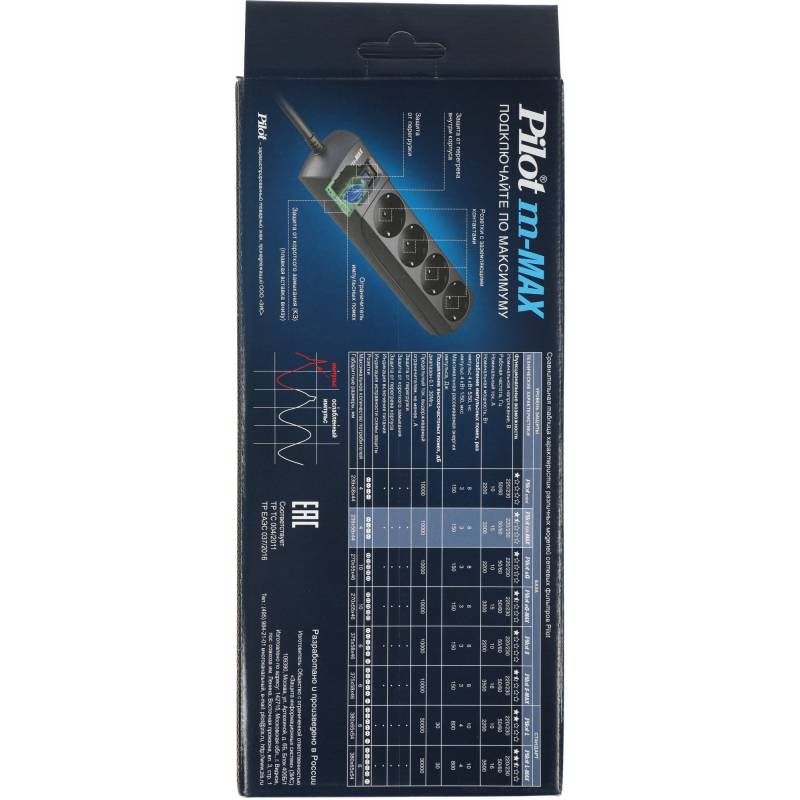 Сетевой фильтр Pilot m-MAX 10м (4 розетки) серый (коробка)
