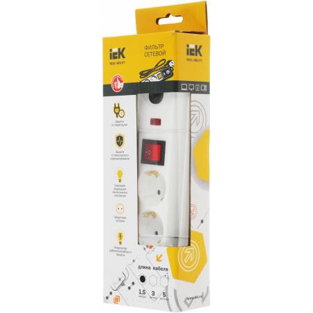 Сетевой фильтр IEK СФ-03К 1.5м (3 розетки) белый (коробка)