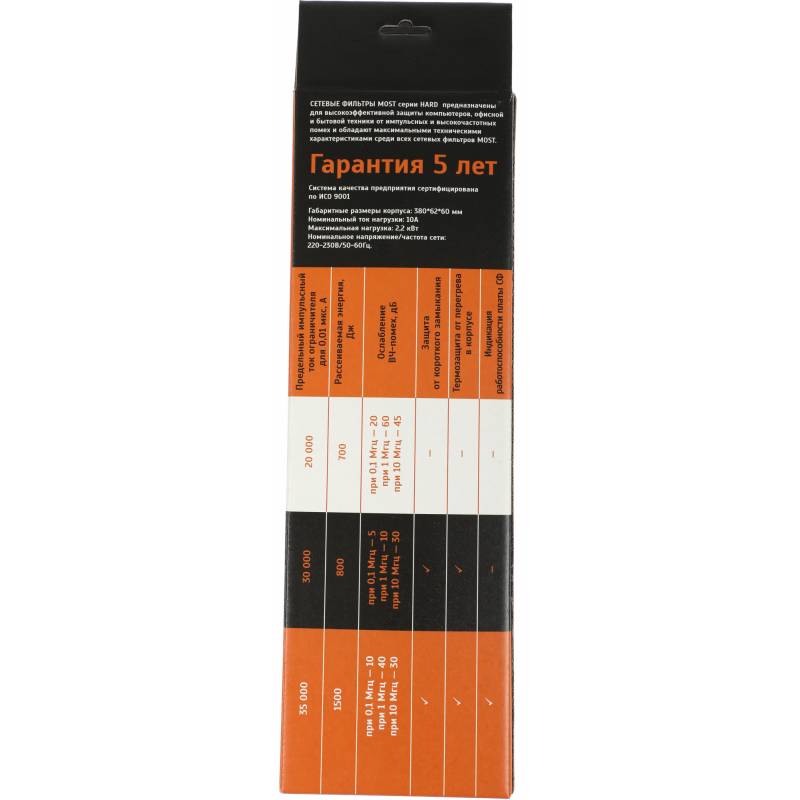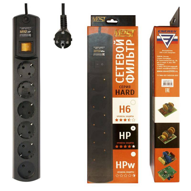 Сетевой фильтр Most HP 5м (6 розеток) черный (коробка)