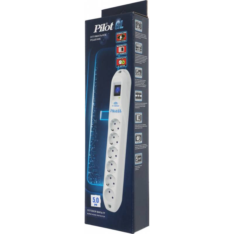 Сетевой фильтр Pilot GL 5м (6 розеток) белый (коробка)