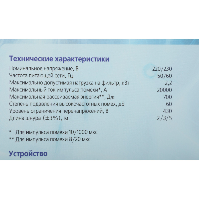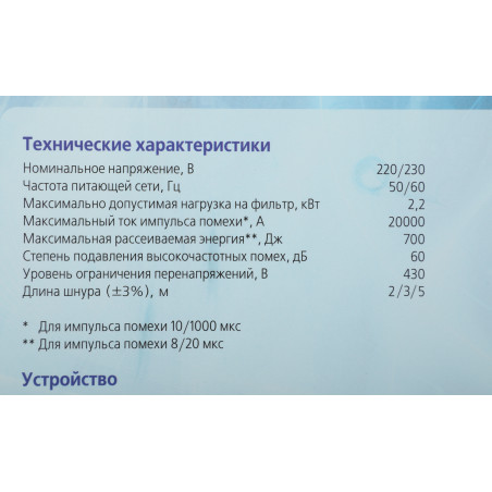 - Разработан, чтобы не допустить выхода из строя блоков питания компьютерной, аудио-видео техники при повышении напряжения свыше 250 В. Рекомендуется для использования в районах с повышенным напряжением в сети питания.