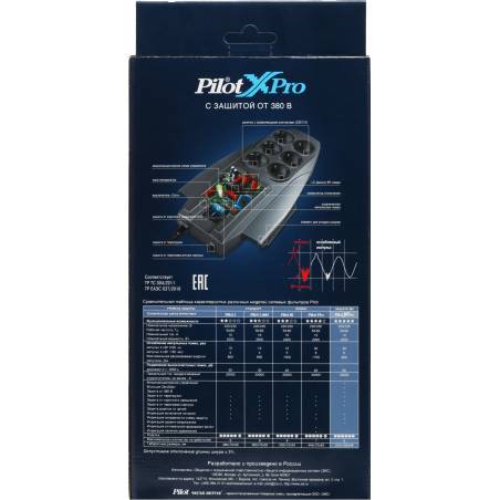 Сетевой фильтр Pilot X-Pro 3м (6 розеток) серый (коробка)