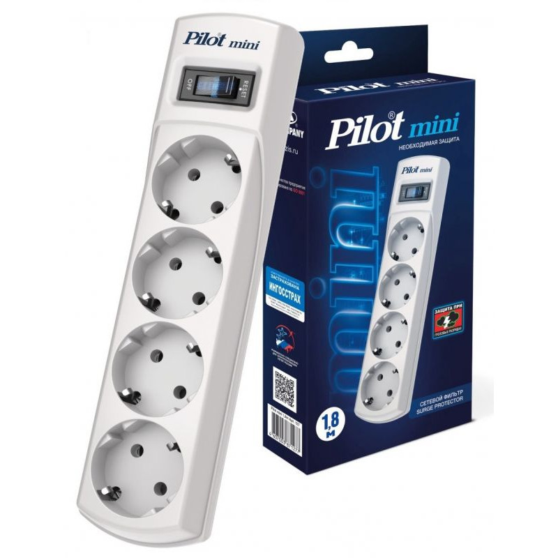Сетевой фильтр Pilot mini 1.8м (4 розетки) белый (коробка)