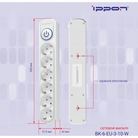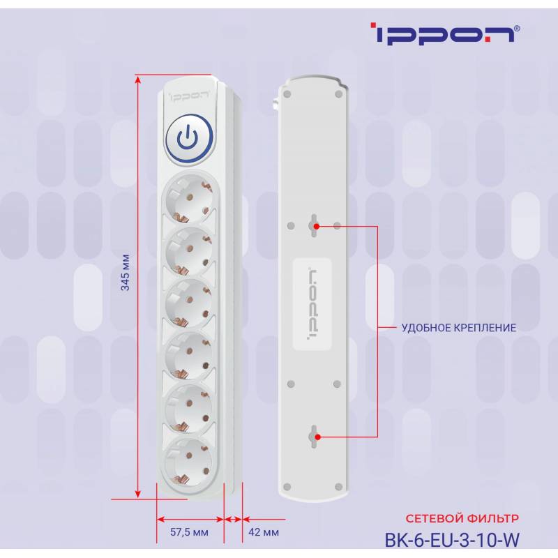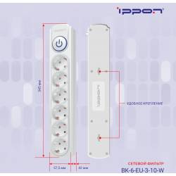 Сетевой фильтр Ippon BK-6-EU-3-10-W 3м (6 розеток) белый (коробка)