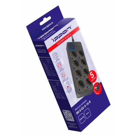 Сетевой фильтр Ippon BK-8-EU-5-16-B 5м (8 розеток) черный (коробка)