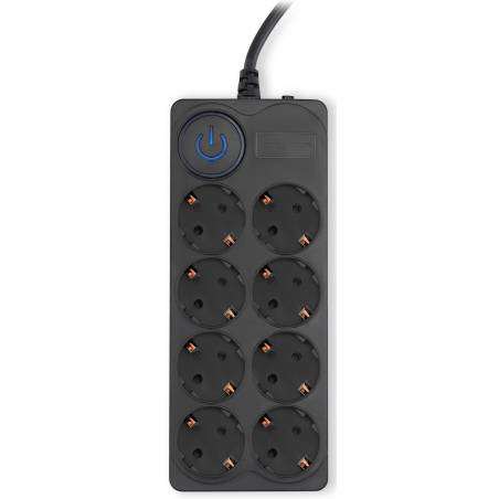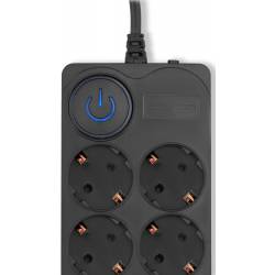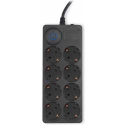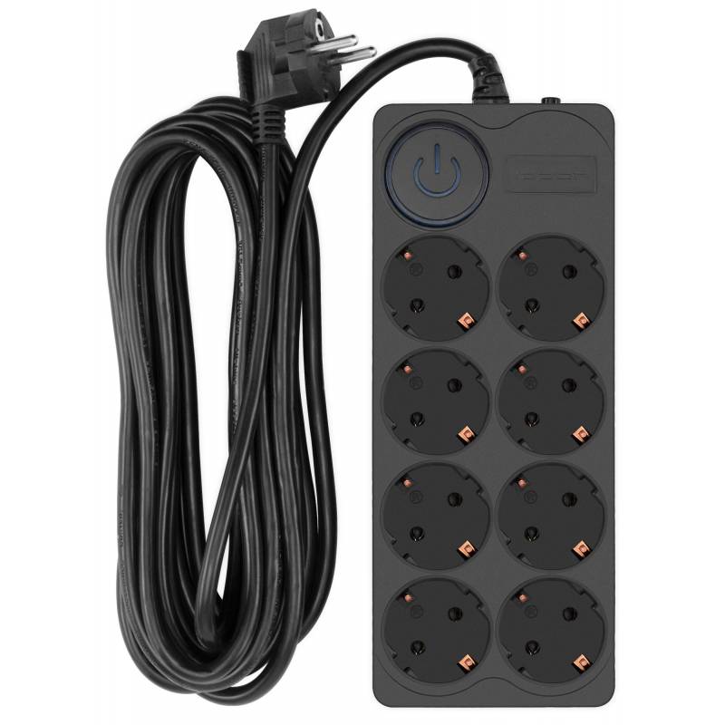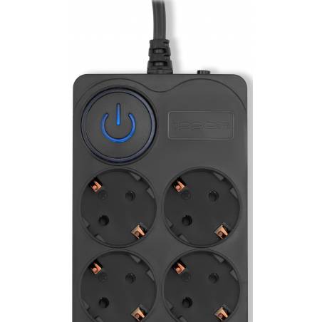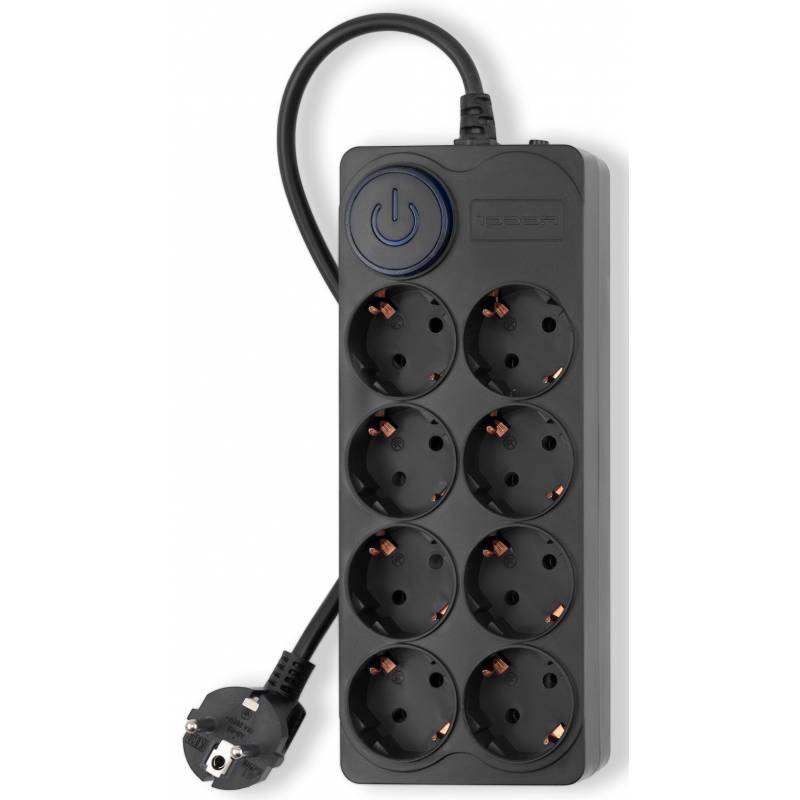 - 8 евророзеток с заземлением. Входная вилка Schuko. Защита от перегрузки. Защита от импульсов высокого напряжения. Защита от перетирания провода в месте входа в корпус фильтра. Ударопрочный негорючий корпус. Кнопка питания с индикатором сети.
