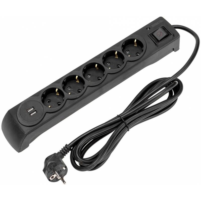 Сетевой фильтр Kranz 13-4702 3м (5 розеток) черный (коробка)