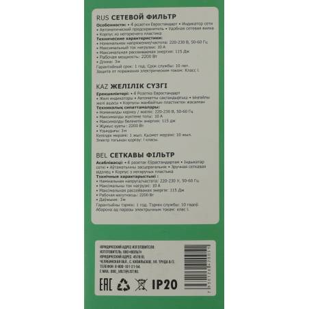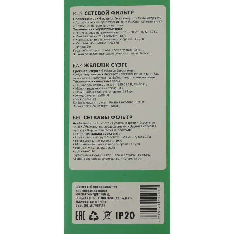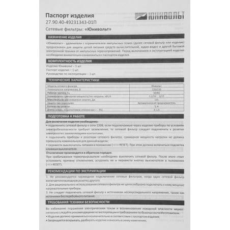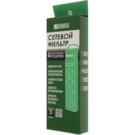 Сетевой фильтр Юнивольт 00-00000387 3м (4 розетки) белый (коробка)