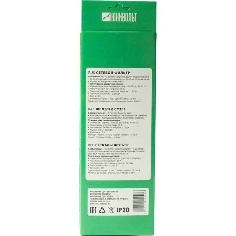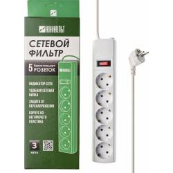 Сетевой фильтр Юнивольт 00-00000390 3м (5 розеток) белый (коробка)