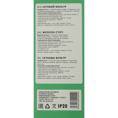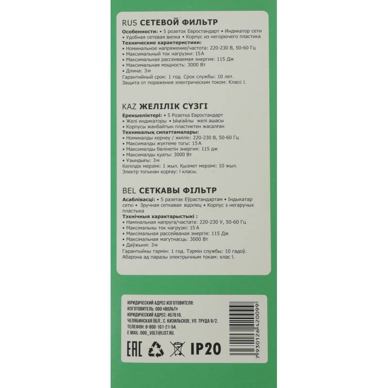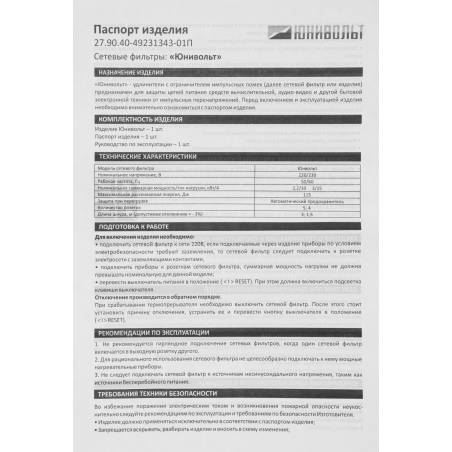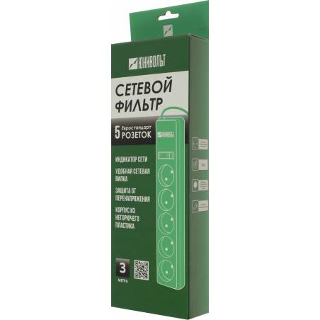 Сетевой фильтр Юнивольт 00-00000406 3м (5 розеток) белый (коробка)