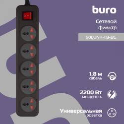 Сетевой фильтр Buro 500UNH-1.8-BG 1.8м (5 розеток) черный/серый (коробка)