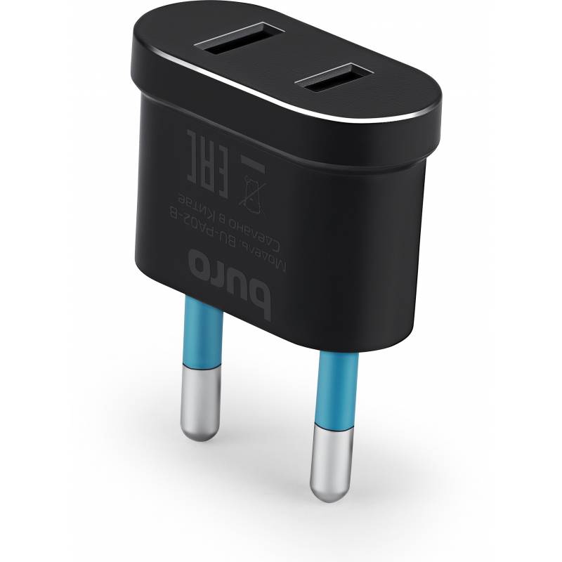 Адаптер-переходник Buro BU-PA02-B (1 розетка) черный (пакет ПЭ)