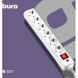 Сетевой фильтр Buro 600SH-16-1.8-W 1.8м (6 розеток) белый (коробка)