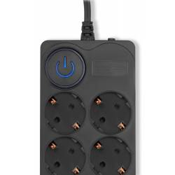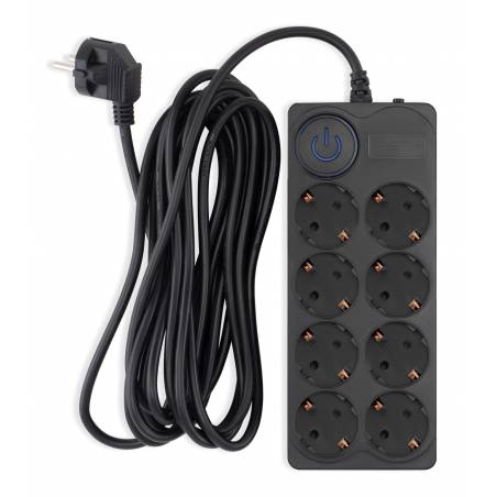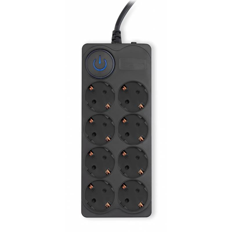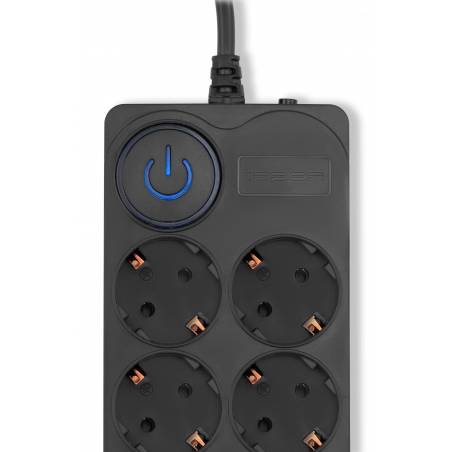 - 8 евророзеток с заземлением. Входная вилка Schuko. Защита от перегрузки. Защита от импульсов высокого напряжения. Защита от перетирания провода в месте входа в корпус фильтра. Ударопрочный негорючий корпус. Кнопка питания с индикатором сети.