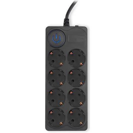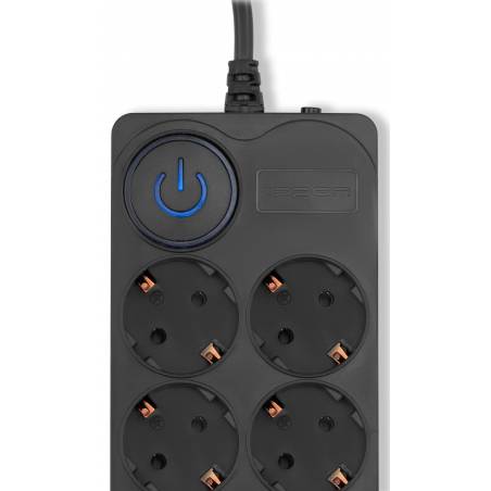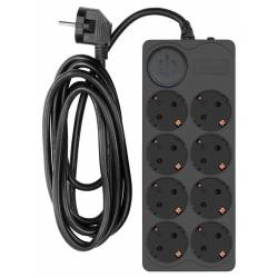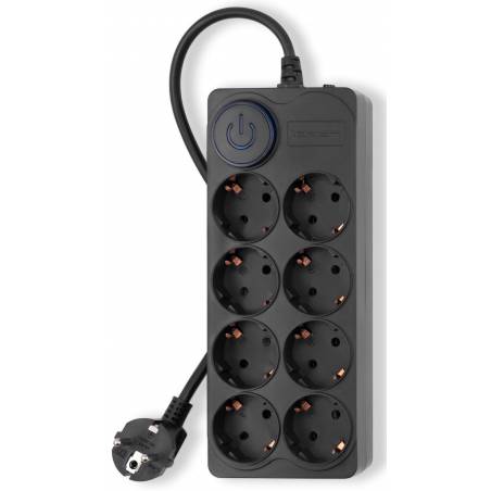 - 8 евророзеток с заземлением. Входная вилка Schuko. Защита от перегрузки. Защита от импульсов высокого напряжения. Защита от перетирания провода в месте входа в корпус фильтра. Ударопрочный негорючий корпус. Кнопка питания с индикатором сети.