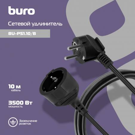 Сетевой удлинитель Buro BU-PS1.10/B 10м (1 розетка) черный (пакет ПЭ)