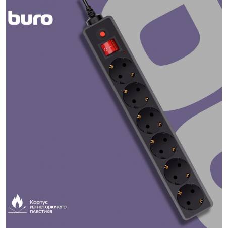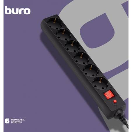 Сетевой фильтр Buro 600SH-16-3-B 3м (6 розеток) черный (коробка)